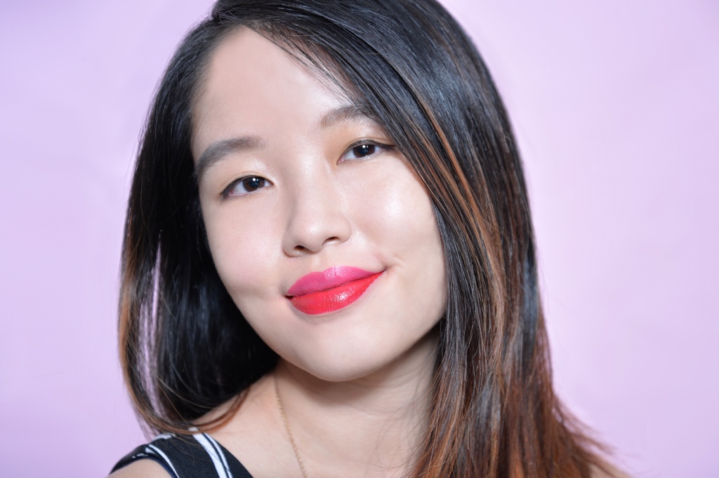 One day I discovered that Patrene is into cosplay. She dresses up for STGCC and is a huge LOTR fan. She’s also one of those colleagues I always see with daring lip colours, so I challenged Louise to do the rainbow lips from Pony’s video on Patrene. The shades you see here are (from top to bottom): yellow mixer, RD166 (a star shade), WN248 and finally the purple mixer. Just take it one shade at a time and blend.