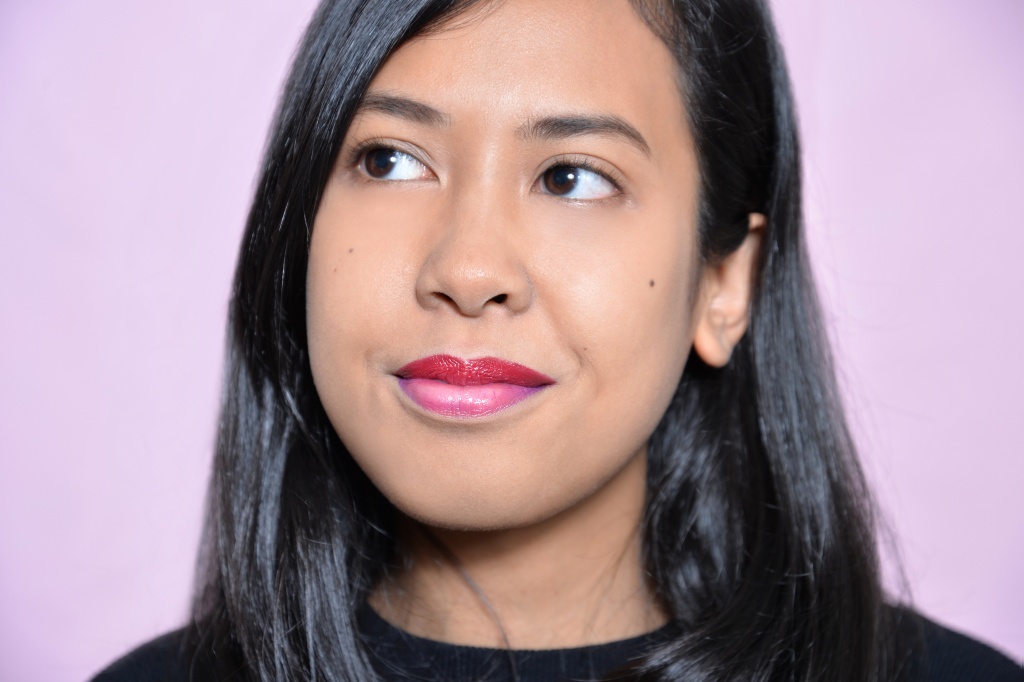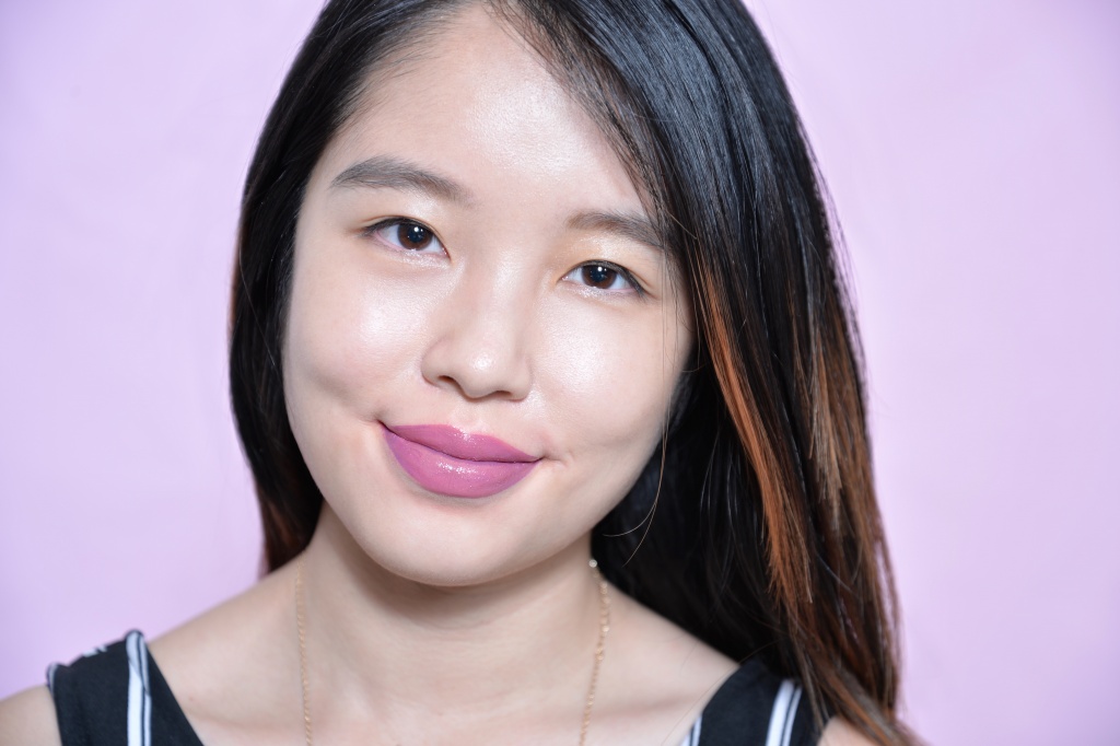 When I asked Syiqin what her go-to lip colour is, she said some kind of dark purple or mauve. So we took the campaign “hero shade”, WN288 and slicked it on her upper lip, and used the purple mixer on her lower lip, with just a touch of the pearl mixer in the centre of the lip. It’s different from her daily look, but not too crazy to wear to the office!