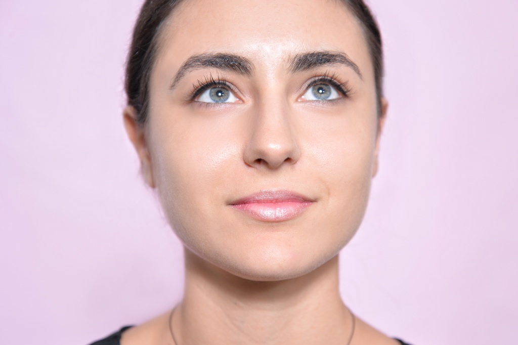 Leni also favours a nude lip — but nude doesn’t have to be boring. Louise used the pearl mixer across her entire lips, then applied a slick of CR330 (another star shade) just on the inner part of her lower lip. Yes, this look is super easy to achieve.