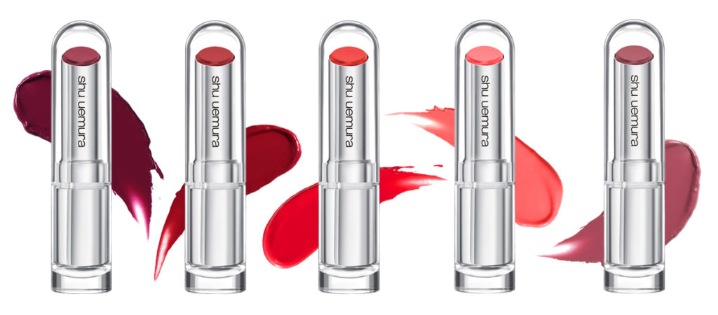 shu uemura Rouge Unlimited, $38 each, available in 62 shades (7 Rouge Unlimited Sheer Shine lipsticks launched in Oct 2015, 22 Rouge Unlimited matte lipsticks launched in Feb 2017, and 33 new Rouge Unlimited central lipsticks launching in Oct 2017), at all shu uemura counters and boutiques.