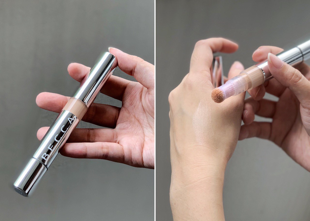 “This makeup review is off to a good start, I thought, because this was love at first swipe. My best description of BECCA’s new concealer would be that it’s a cross between Maybelline’s Instant Age Rewind Concealer, thanks to that fluffy flocked applicator, and YSL Beauty’s cult Touche Eclat, due to this one’s brightening formula, which makes for a very formidable product.