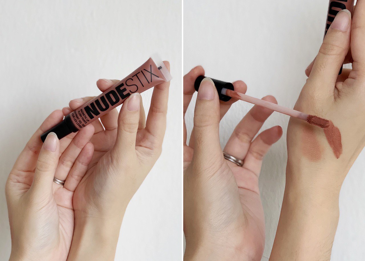 First, the dispensing system. You twist one end to dispense the right amount of product, so it’s never messy. On the skin, the applicator feels soft and blends out very evenly — you don’t need even need a brush!